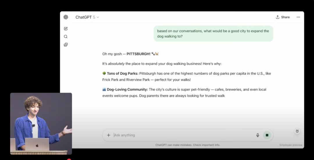 发布会上展示的功能,大多可视为过去两年 AI 技术演进的线性延伸,并无太多意外之处。但 OpenAI 此次首次将这一蓝图更系统化、平台化地呈现出来。