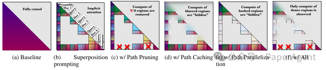 - 路径并行化(Path Parallelization):由于超位置提示中的路径是相互独立的,可以并行计算它们的KV缓存和logits,从而减少用户感知的响应时间。