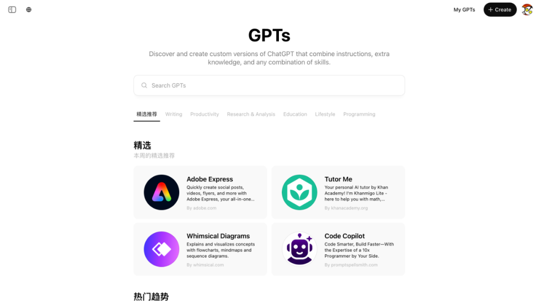 所以呢,你完全可以预期最近的「免费」之后,ChatGPT的付费用户量会大幅度增加,用低剂量免费吸引用户付费的策略在商业产品领域很常见,倒没什么好诟病的,但是你会越来越觉得OpenAI是很强,但最近做的事好像跟他们宣扬的要给人类带来AGI这点似乎有些渐行渐远,或者至少没那么有关系了。 当然,抛开这一点点情绪上对OpenAI的失望,我依然建议你试试GPTs。