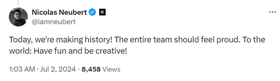 Runway的创意总监也是相当兴奋,认为Runway创造了历史,将再次改变文生视频赛道。