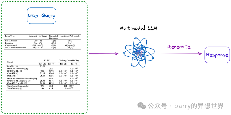 (m).首先,采用(a)至(d)类别中的任一方法,将文档中的所有表格解析为图像格式。然后直接将所有表格图像和用户查询发送至跨模态大型语言模型(如GPT-4V等)并返回答案。