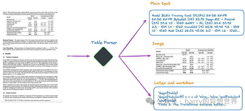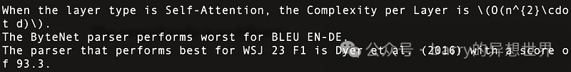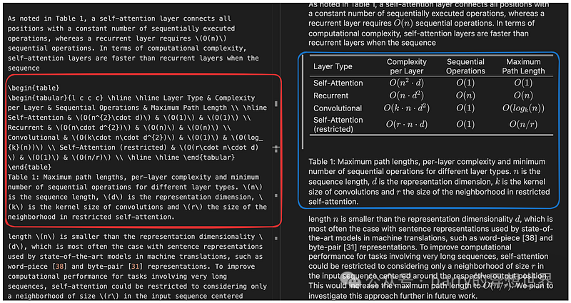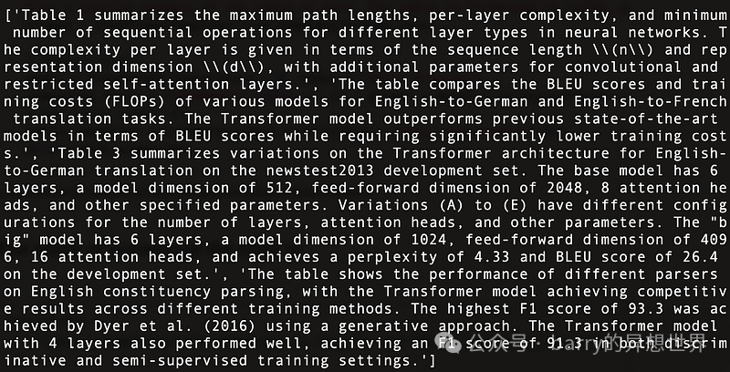 下载论文Attention Is All You Need到**YOUR_PDF_PATH**,运行 nougat 解析 PDF 文件,并从解析结果中获取 LaTeX 格式的表格和文本格式的表格标题。首次执行将下载必要的模型文件。 def june_run_nougat(file_path, output_dir): # 运行 Nougat 并将结果存储为 Mathpix Markdown cmd = ["nougat", file_path, "-o", output_dir, "-m", "0.1.0-base", "--no-skipping"] res = subprocess.run(cmd) if res.returncode != 0: print("运行 nougat 时出错。") return res.returncode else: print("操作完成!") return 0