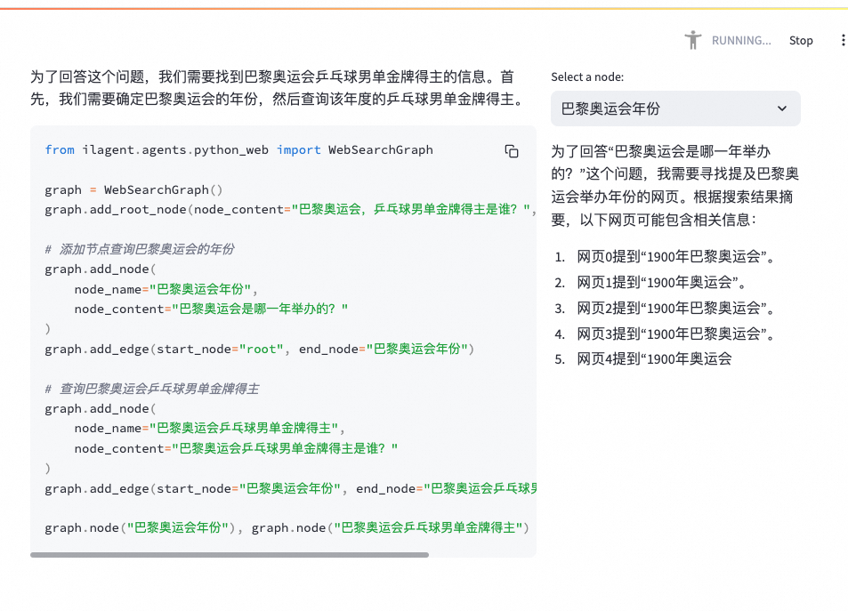 如下面视频所示,对于多步骤的复杂问题,模型能够分析用户需求,再针对每一个技术难点搜索对应的解决方案,最后总结并输出答案。