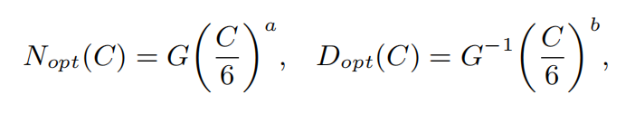 公式和核心理念 其中,E、A、B 为常数,α = 0.34、β = 0.28,分别表示模型规模和数据量对损失的影响。 最优计算资源分配: Chinchilla Scaling Law 提出了一种在给定计算预算下实现最佳性能的分配方案。该理论指出,算力C应与模型参数数量N和数据规模D之间满足一个近似的比例关系:C≈6ND。这里的“6”仅为用于平衡预算与资源比例的常数,以此关系实现更高的计算效率。具体来说,在此约束下,当计算预算C增加时,模型的最优参数量Nopt(C)和最优数据量Dopt(C)可以按照以下公式计算: