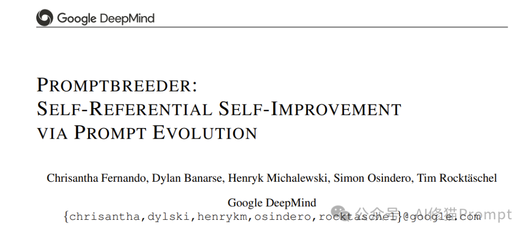 题目:PROMPTBREEDER:通过快速进化实现自我参照的自我改进 网址:https://arxiv.org/pdf/2309.16797.pdf ingFang SC", "Hiragino Sans GB", "Microsoft YaHei UI", "Microsoft YaHei", Arial, sans-serif;text-wrap: wrap;background-color: rgb(255, 255, 255);">