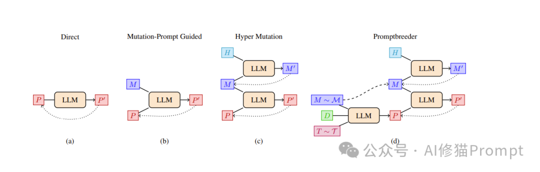 3. 自我进化:在保留的提示组合的基础上,PROMPTBREEDER会利用变异提示,让语言模型自主生成新的任务提示。同时,它也会改进变异提示本身,即"变异提示的变异"。这样,PROMPTBREEDER就实现了提示策略的自我进化。