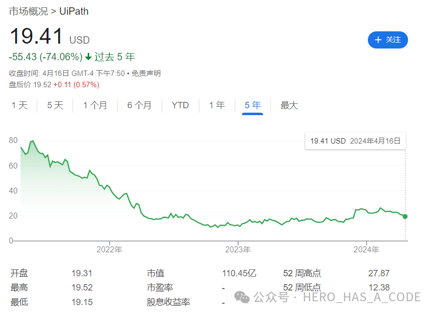 在SaaS热潮期间,API和RPA不仅仅是技术工具,更成为市场的焦点。例如,在API领域,2019年11月15日,MuleSoft被Salesforce以65亿美元收购,而Zapier则仅凭130万美元的融资发展成为估值超过40亿美金的行业新星。在RPA领域,Uipath、Appian等公司也通过上市成功实现了快速增长。尽管这些公司的营收仍在显著增长,但随着SaaS浪潮的逐渐退去,它们的估值却出现了较大的回调。