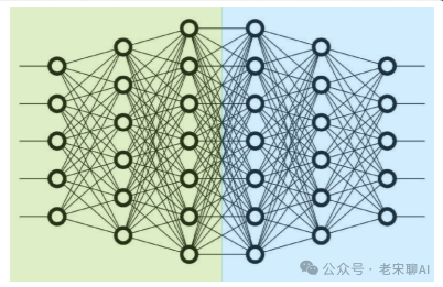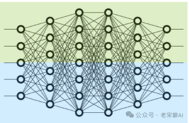 2.2 张量并行 - 思想:对层内进行分割,实际上是将Tensor 矩阵运算分配到不同的 GPU 上。如下图就是将每一层分为两部分: