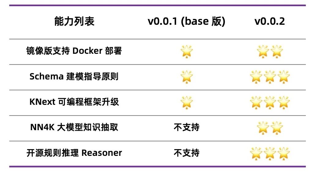 ?了解详情:https://spg.openkg.cn/introduction/knext ChatGPT 在多种任务中表现出的智能令人印象深刻,使用 ChatGPT 和其他大语言模型增强知识图谱,可使知识图谱的构建过程更加准确和自动化,为此我们抽象了适合知识图谱的神经网络框架 NN4K。 NN4K 是一个神经网络模型的开发、管理、服务框架,为 OpenSPG 提供简单易用、模式统一的大模型服务。此次发布我们实现了在知识图谱构建过程中,调用大语言模型技术帮助构建图谱。与 OpenAI API 兼容的大语言模型服务,可通过修改配置方便接入;与 OpenAI API 不兼容的大语言模型服务,用户可通过开发自定义 NNInvoker 的方式接入。 ? 了解详情:https://spg.openkg.cn/tutorial/knext/nn4k 规则推理是知识图谱非常重要的一部分,将图谱的事实知识抽象并关联到具有实际的商业价值的逻辑知识。在 OpenSPG 0.0.2 中开源了完整的 Reasoner 能力,包括语法解析,执行计划,推理执行引擎。同时执行引擎侧定义 RDG 引擎扩展层,允许用户将推理能力迁移到自有图计算引擎。 ? 了解详情:https://spg.openkg.cn/introduction/reasoner 作为 2024 年的第一个版本,OpenSPG 在提高易用性,以及和大模型技术结合上迈出了第一步。2024 年我们将持续持续深化 SPG 与 LLM 双向驱动的技术范式,开源新一代知识引擎完整技术栈。在这个过程中,持续提升 SPG 的语义表达能力,提升易用性降低使用门槛,发布更多开箱即用的工具包、案例最佳实践、教学案例视频等。也期待社区同仁一起加入共建新一代 AI 引擎框架。 |