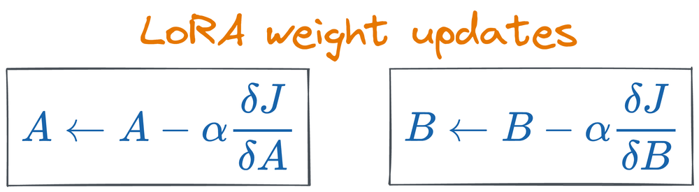 在 LoRA 中,我们以相同的学习率更新低秩矩阵 A 和 B: