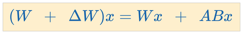 数学上,这种方法是通过修改线性层中的权重矩阵 ΔW 来实现的: