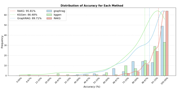 - 准确性:RAKG 在 MINE 数据集上的准确性达到了 95.81%,显著优于 KGGen(86.48%)和 GraphRAG(89.71%)。