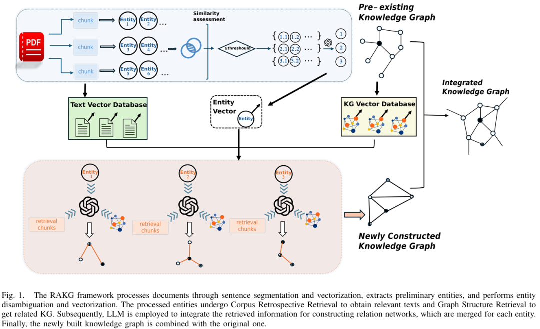 三、RAKG框架结构 RAKG 框架的整体结构包括以下几个关键步骤: - RAKG 采用基于语义完整性的动态分块策略,将文档分割为多个文本片段,并对每个片段进行向量化处理。