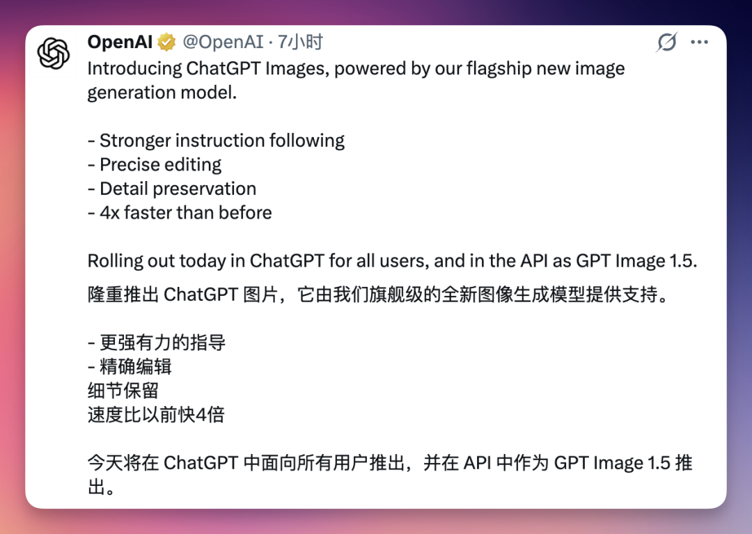 而现在,OpenAI发布的GPT Image 1.5就是想在图像生成领域奋起直追。。