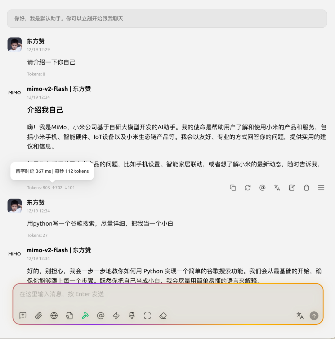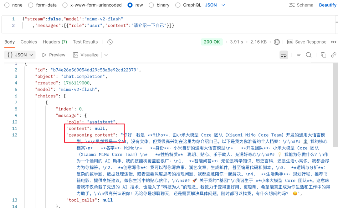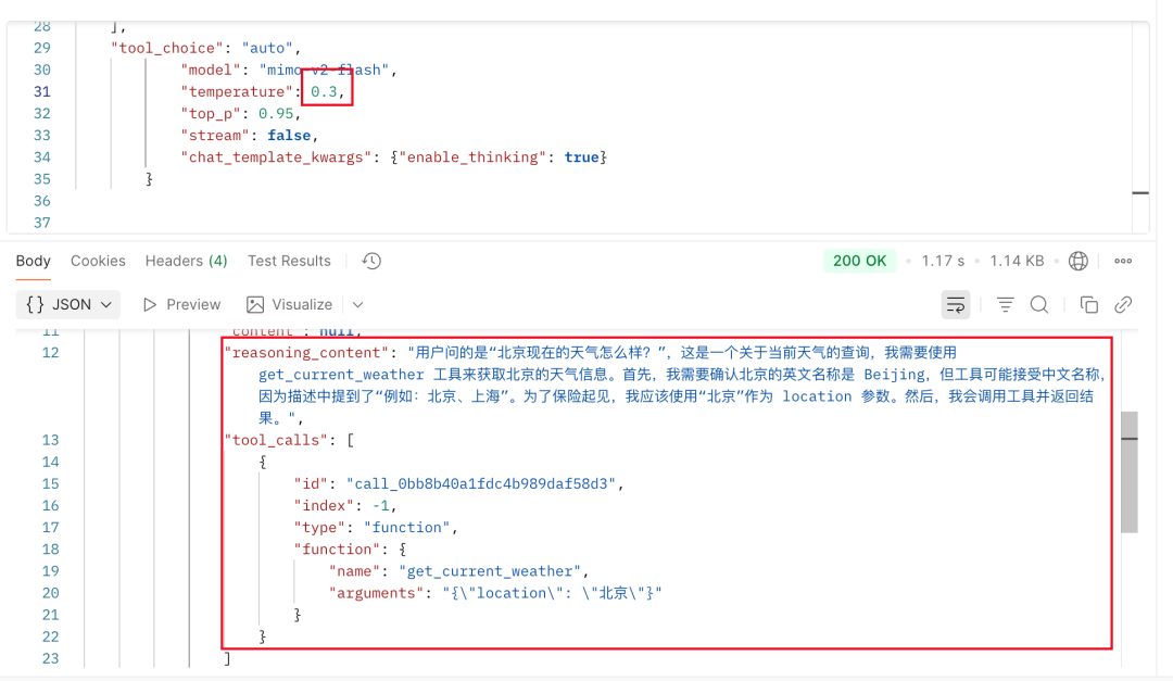 值得注意的是,与其他模型不同,在现阶段本地部署的Mimo-V2-Flash,enable_thinking是必须要传的
