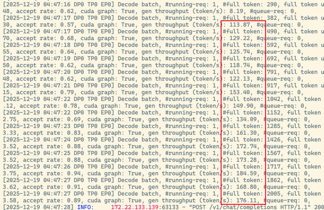 平均也达到了110tokens/s,比较惊喜,超过了在默认启动参数下Qwen3-235B