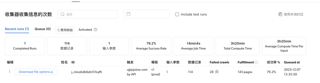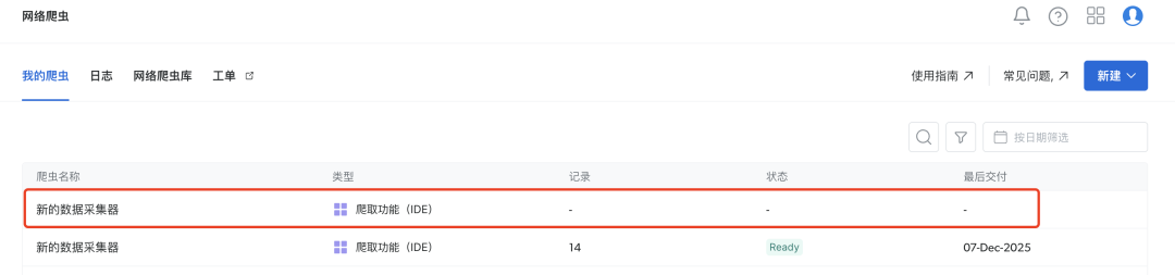 在我的爬虫列表中可以看到,新建的数据采集器正在执行