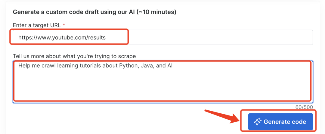 这里我选择让AI为我生成一个自定义爬虫,爬虫目标网站