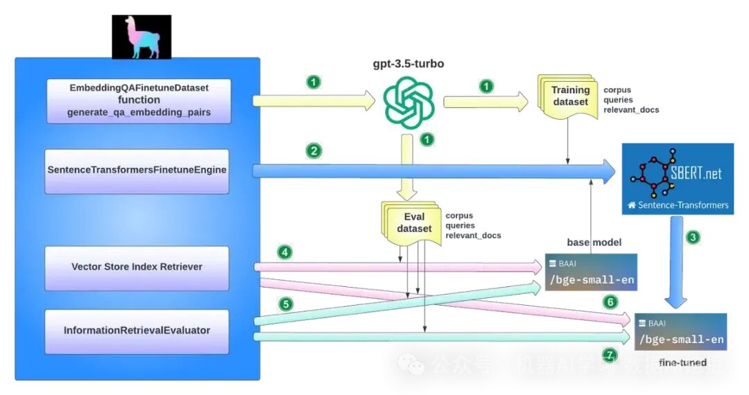 微调嵌入模型微调嵌入模型显著影响RAG系统中检索内容的相关性。这个过程涉及定制嵌入模型以增强特定领域上下文中的检索相关性,特别是对于处理不断发展或罕见术语的专业领域。 生成用于训练和评估的合成数据集这里的关键思想是,可以使用像GPT-3.5-turbo这样的语言模型来生成用于微调的训练数据,以基于文档块制定问题。这允许我们在不需要人工标记者的情况下,以可扩展的方式生成合成的(查询, 相关文档)正例对。最终的数据集将是问题和文本块的对。 微调嵌入在生成的训练数据集上微调任何嵌入模型