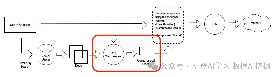 提示压缩检索到的文档中的噪声会不利于RAG的性能,因此,与查询最相关的信息可能会被埋在含有大量不相关文本的文档中。将整个文档传递给应用程序可能会导致更昂贵的LLM调用和较差的响应。 这里,重点在于压缩不相关的上下文,突出关键段落,并减少整体上下文长度。 上下文压缩上下文压缩旨在解决这一问题。这个想法很简单:不是立即原样返回检索到的文档,而是可以使用给定查询的上下文来压缩它们,以便只返回相关信息。“压缩”在这里指的是压缩单个文档的内容以及整体过滤掉文档。