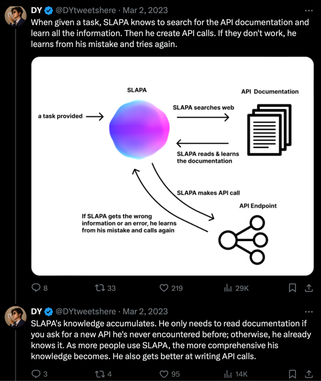 这已经发生了。查看 2023 年 3 月发布的关于执行 API 自学习代理 (SLAPA) 的 Twitter 帖子:This is already happening.从 2023 年 3 月开始,请查看有关执行 API 的自学习代理 (SLAPA) 的 Twitter 帖子:
