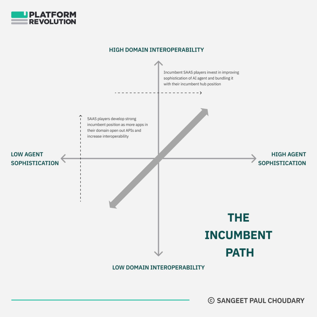 这些现有企业处于有利地位,可以利用其主导的枢纽地位,并在其之上捆绑人工智能代理。代理的所有资源和能力都已经很好地整合到了枢纽位置。客户关系已归工作流中心所有。代理人只是被捆绑到这个职位上以加强现任者的地位。