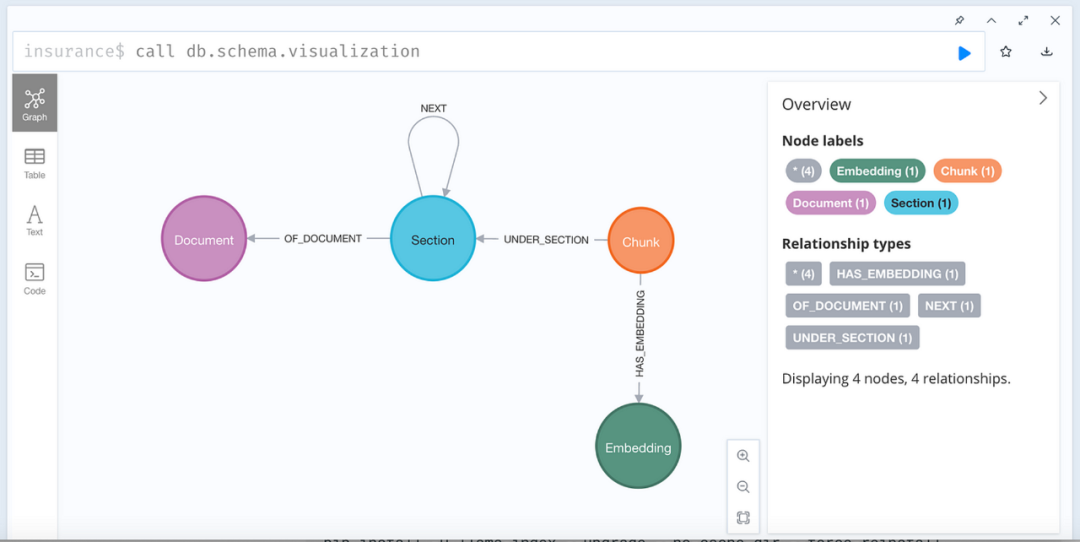 # Retrieve nodes (text) and objects (table)nodes = node_parser.get_nodes_from_documents(documents)base_nodes, objects = node_parser.get_nodes_and_objects(nodes) ingFang SC", Cambria, Cochin, Georgia, Times, "Times New Roman", serif;letter-spacing: normal;outline: 0px;text-align: left;line-height: 1.75em;">查询文档图形以下是文档摄取到 Neo4j 后的样子。