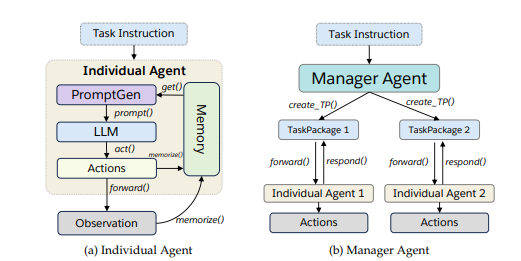 《AgentLite: A Lightweight Library for Building and Advancing Task-Oriented LLM Agent System》  解决问题:现有的 LLM-based Agent 库没有统一且可编写的底层架构,AgentLite 提供了一套能够针对特定化问题,任意修改代码的 Agent 平台,让科研人员更便捷的去开发特定应用场景的 Agent模型框架:AgentLite 分为 Maganer Agent、Individual Agent 两层,Manager Agent 根据给定任务指令创建子任务并进行分发,Individual Agent 通过 PromptGen 模块生成指令,发送给 LLM 执行后将结果输出应用场景:Agent Library,开发者可以在 AgentLite 平台上进行任意类型 Agent 开发,例如图像理解、数学问题、国际象棋、哲学家聊天等