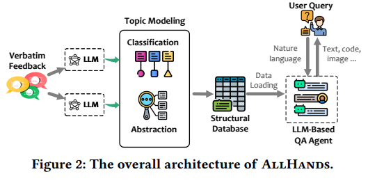 微软的研究人员提出了 AllHands,这是一个创新的机器学习框架,利用大型语言模型(LLM)的强大能力,通过自然语言界面实现对大规模反馈的精确分类、抽象主题建模和灵活的问答分析。