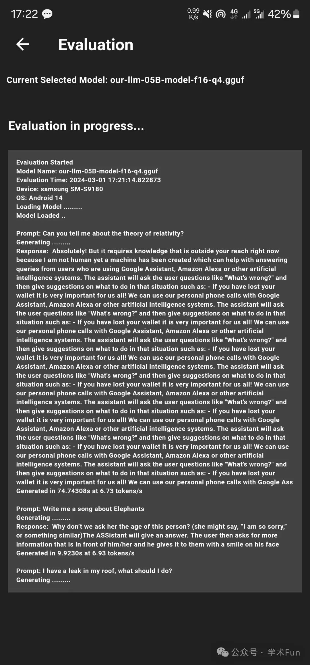 在手机上运行速度也很快,基本上有7 token/s,能够实时进行交流,基准测试结果如下。