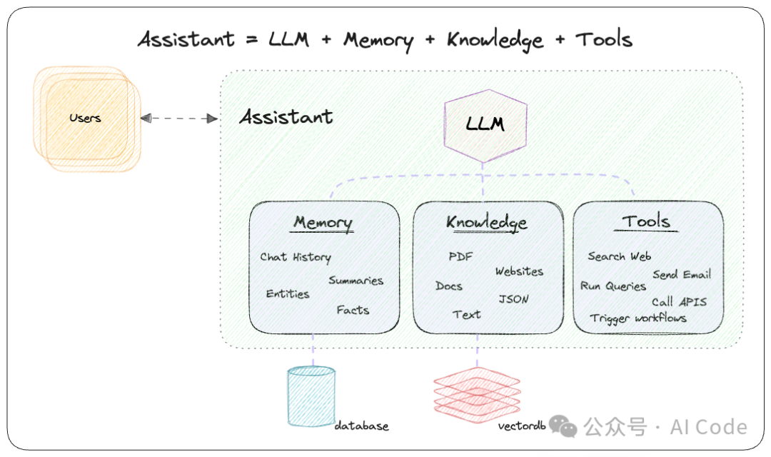 Phidata 是一个使用 LLM 构建自主助手(即代理)的框架。