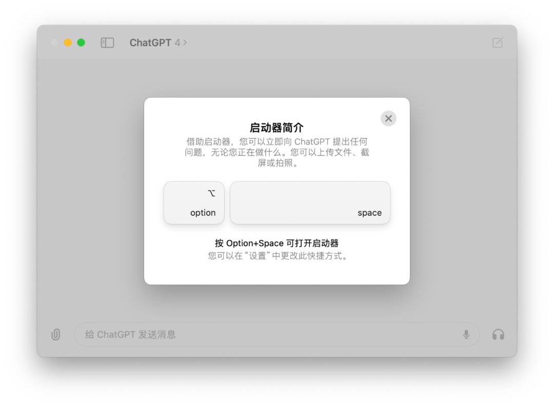 这里需要说明的是,既然叫做 ChatGPT macOS App,说明它现在只能装在 Mac 上,而且只支持M1~M3 版本的 Mac(我十分,甚至九分怀疑,OpenAI 都是果粉) 这个应用,优先会向Plus 用户开放,未来几周大家会逐步灰度到,然后免费用户也能用到。今年底,也会有 Windows 版。 使用时,按下快捷键(Option + 空格键)就能向 ChatGPT 提问。当然,这个程序也支持语音对话,上传文件、直接或者截图讨论。