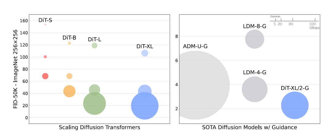 这说明增大Transformer规模和减小patch大小可以显著提升生成图像的质量