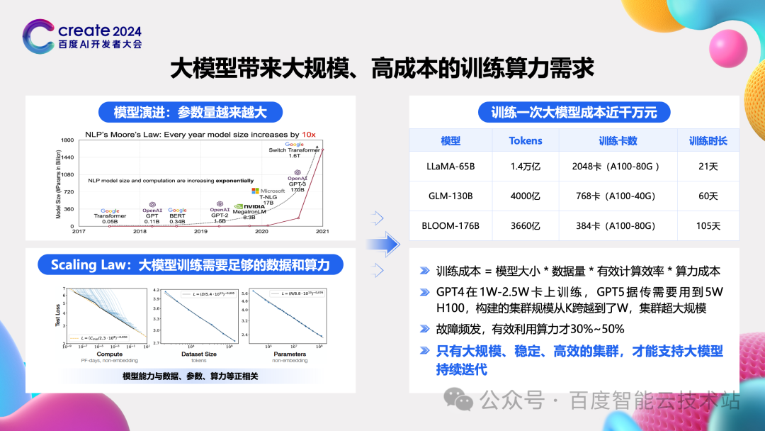 本文整理自 4 月 16 日的 2024 百度 Create 大会的公开课分享《百舸 AIAK-LLM:大模型训练和推理加速实践》。 ingFang SC", "Hiragino Sans GB", "Microsoft YaHei UI", "Microsoft YaHei", Arial, sans-serif;letter-spacing: 0.544px;text-wrap: wrap;background-color: rgb(255, 255, 255);line-height: 1.6em;visibility: visible;">今天要分享的主题是 AI Infra 相关的内容,主要内容分为四部分。- ingFang SC", "Hiragino Sans GB", "Microsoft YaHei UI", "Microsoft YaHei", Arial, sans-serif;letter-spacing: 0.544px;text-wrap: wrap;background-color: rgb(255, 255, 255);line-height: 1.6em;visibility: visible;">首先和大家一起讨论大模型给基础设施带来的挑战。