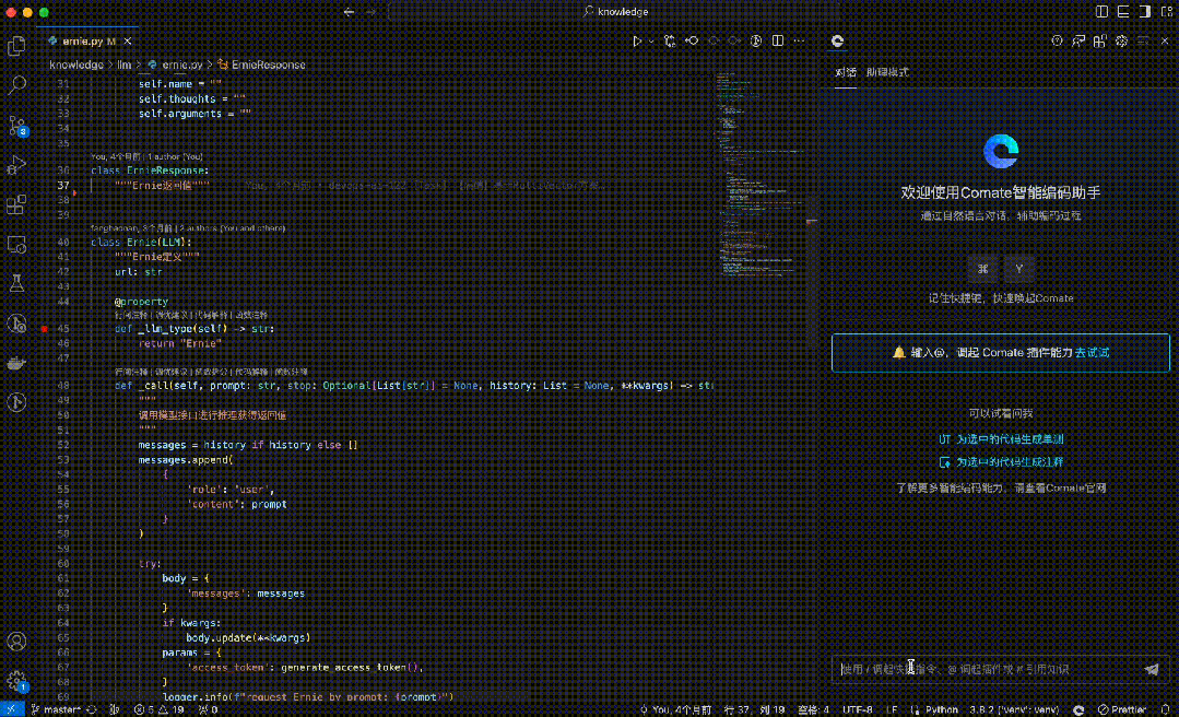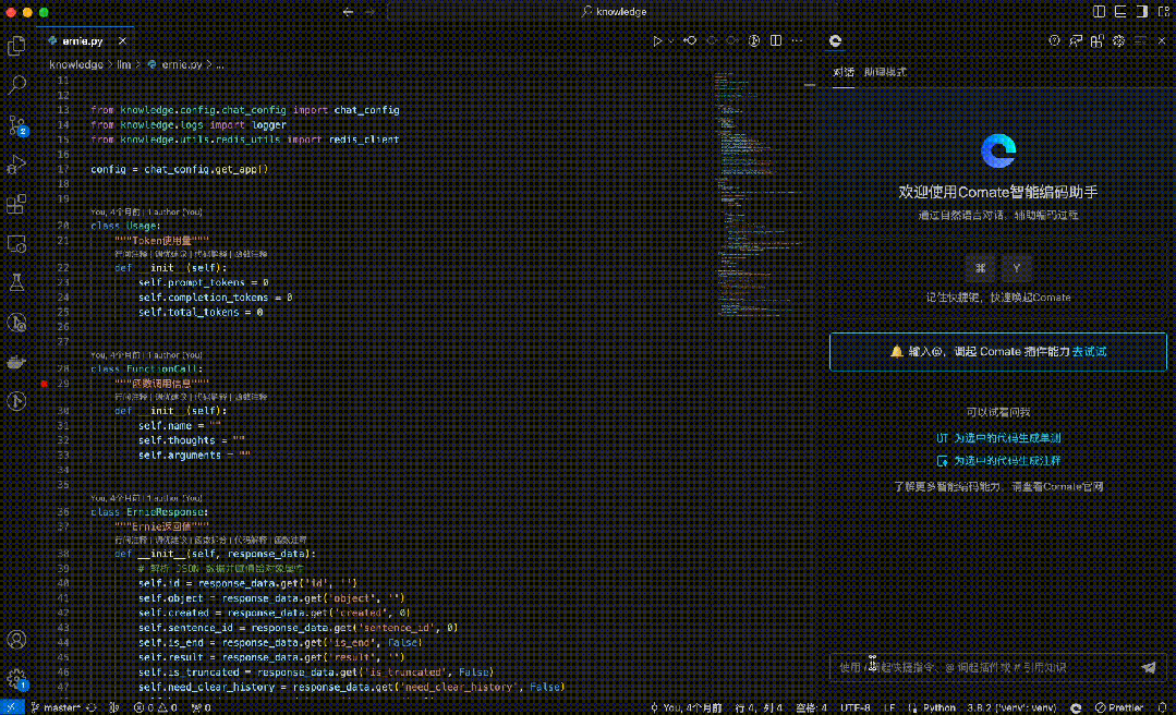 Comate是基于文心大模型的智能代码助手,它把代码理解、生成、优化等能力无缝集成到研发流程的各个环节,就像助理一样,帮助程序员提升代码开发质量和效率,释放“十倍”软件生产力。Comate基于文心大模型,提供代码智能生成、研发智能问答能力。