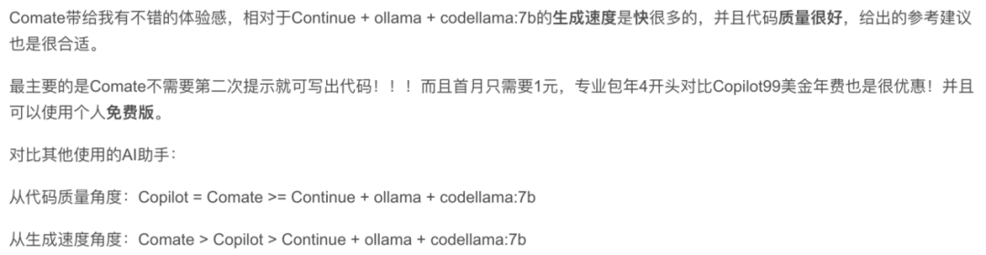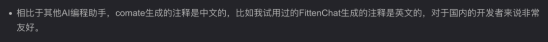 还有用户对Comate用中文写注释的能力,大加赞赏。