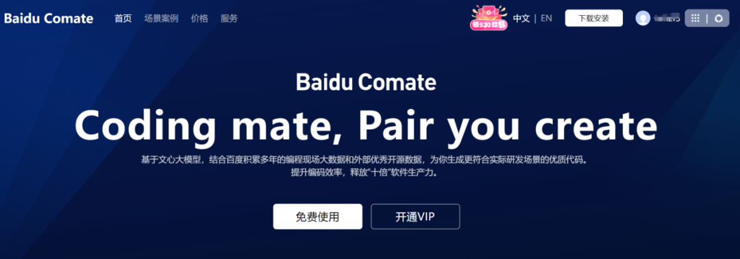 Step1:打开Baidu Comate官网:https://comate.baidu.com/