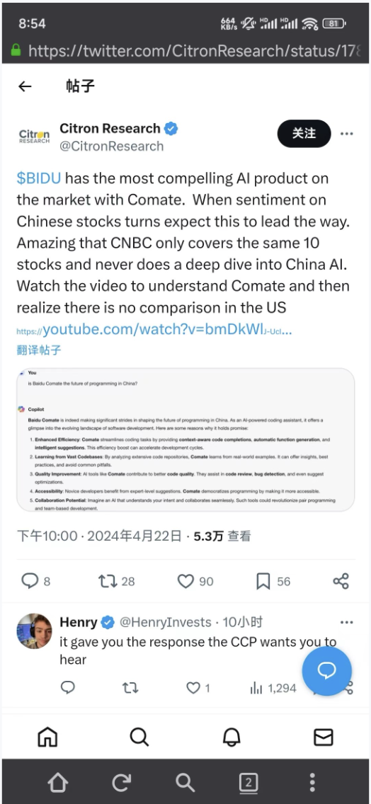 国外研究机构对Comate的发布表达了正向的评价,也肯定了百度Comate在编程智能助手领域的突破和成就,给咱中国人争光了。