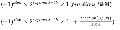 # 根据符号、指数和尾数计算float16值 value = (-1) ** sign * (1 + mantissa) * 2 ** (exponent - 15) return value