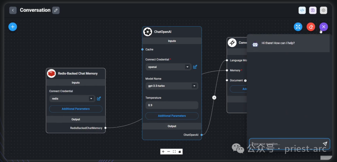 2、Flowise AI 在 LLM(大规模语言模型)应用开发领域,降低门槛、提升效率一直是业界的共同诉求。作为一款开源且无需编码(No-Code)的 LLM 应用构建工具,Flowise 正成为这一追求的有力实践者。 与传统的编码式开发框架不同,Flowise 以其创新的拖放式可视化界面为最大亮点。开发者无需深入掌握编程语言,只需在界面上拖拽预置的组件模块,通过简单的参数配置和连线,便可轻松构建出功能强大的 LLM 应用。这种全新的开发范式大幅降低了入门门槛,使得 LLM 的应用开发不再是编码人员的专属领域,普通用户也可以尽情挥洒创意、实现自动化需求。