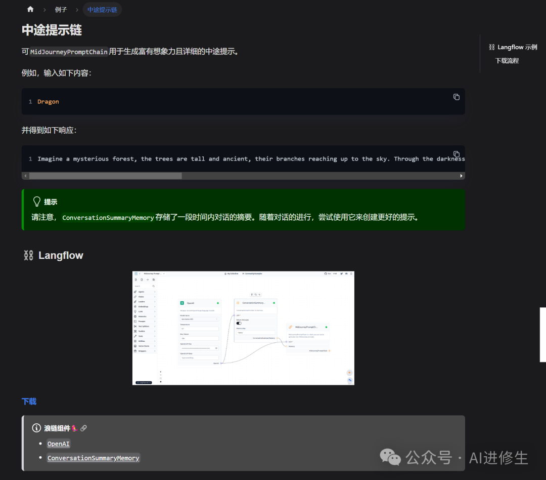 ingFang SC", "Hiragino Sans GB", "Microsoft YaHei UI", "Microsoft YaHei", Arial, sans-serif;font-size: 15px;margin: 1.5em 8px;letter-spacing: 0.1em;color: rgb(63, 63, 63);">Langflow 提供了一系列LangChain 组件可供选择,包括 LLM、提示序列化器、代理和链。