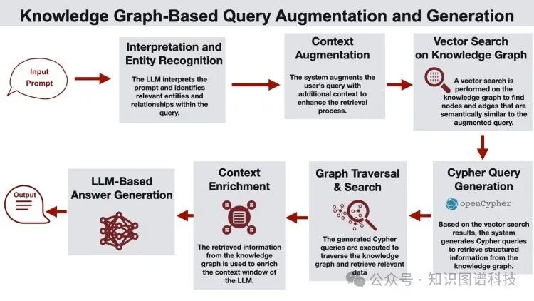 基于知识图谱的检索增强和生成 在执行向量搜索之前,该架构利用知识图谱遍历和检索相关节点和边缘,丰富LLM的上下文窗口。 第一阶段是查询增强,LLM对用户的查询进行处理,提取关键实体和关系。对知识图谱中的节点属性进行向量搜索,以缩小所感兴趣的相关节点范围。 下一步是查询重写,通过检索到的子图生成Cypher查询,进一步缩小图中相关结构化信息的范围。从图遍历中检索到的数据用于丰富LLM的上下文窗口。 最后,LLM根据丰富的上下文生成响应。该架构适用于产品查找或财务报告生成等需要关注实体之间关系的场景。
