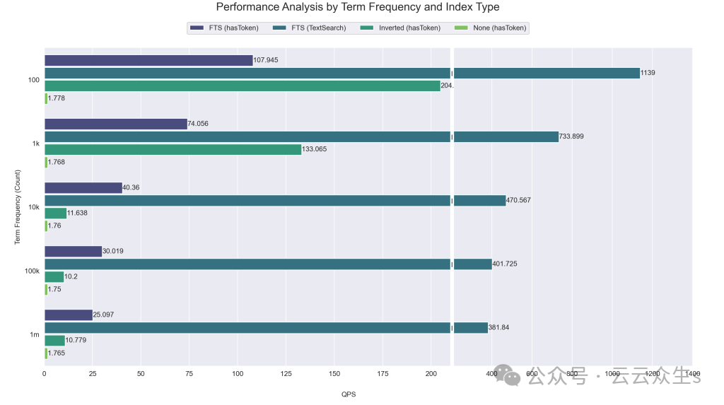 导入数据 要导入数据,请为 ms_macro 数据集创建一个表: CREATETABLEdefault.ms_macro(`id`UInt64,`text`String)ENGINE=MergeTreeORDERBYidSETTINGSindex_granularity=128; 直接从 S3 导入数据到 MyScaleDB: INSERTINTOdefault.ms_macroSELECT*FROMs3('https://myscale-datasets.s3.ap-southeast-1.amazonaws.com/ms_macro_text.parquet',' arquet');将 ms_macro 的数据部分合并为一个以提高搜索速度。请注意,此操作是可选的。 OPTIMIZETABLEdefault.ms_macrofinal;SELECTcount(*)FROMsystem.partsWHEREtable='ms_macro'; 输出: 验证 ms_macro 包含 8,841,823 条记录: SELECTcount(*)FROMdefault.ms_macro; 输出: 创建索引 我们评估了三种类型的索引的性能:FTS、倒排和无(无索引的情况)。 --EnsurethatwhencreatingtheFTSindex,nootherindexexistsonthetextcolumnofms_macro.ALTERTABLEdefault.ms_macroDROPINDEXIFEXISTSfts_idx;ALTERTABLEdefault.ms_macroADDINDEXfts_idxtextTYPEfts;ALTERTABLEdefault.ms_macroMATERIALIZEINDEXfts_idx;