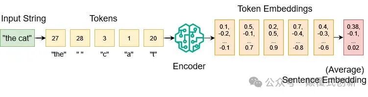 经过标记化后,我们可以将标记列表输入我们的编码器模型。编码器已经从大量的训练数据中学习,将每个标记转换为高维数值向量嵌入。