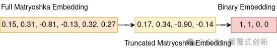 使用套娃嵌入( Matryoshka embeddings),可以根据应用程序更改嵌入的维度。这可以减少存储空间,节省成本,并提高检索速度。