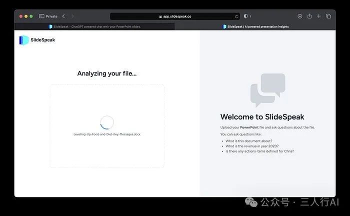上传 Word 或 PDF 以生成 PowerPoint 步骤3:SlideSpeak 的 AI 将分析文本并向您显示文档预览