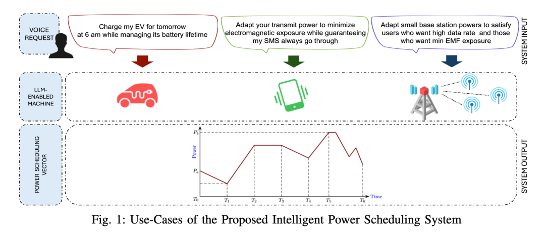 本研究的主要目标是利用LLMs的能力,使机器能够将人类用户的语音请求(Voice Request,VRQ)转换为电力调度向量。例如,对于本文考虑的案例(即电动汽车充电),这样的请求可以是:"明天早上6点为我的电动汽车充电,同时管理其电池寿命"。对于手机,它可能是"调整你的发射功率以最小化电磁暴露,同时确保我的短信始终能发送出去"。