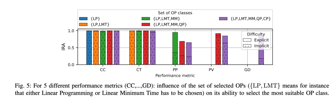 研究发现,提供给分类器的OP类别数量对IRA性能有显著影响。结果显示,虽然有限数量的OP类别限制了可处理的请求数量,但增加更多OP类别会对IRA产生负面影响。这强调了详细和明确的用户请求对实现更高分类准确性的重要性。图5展示了不同OP类别集合对Agent 1选择最合适OP类别能力的影响。