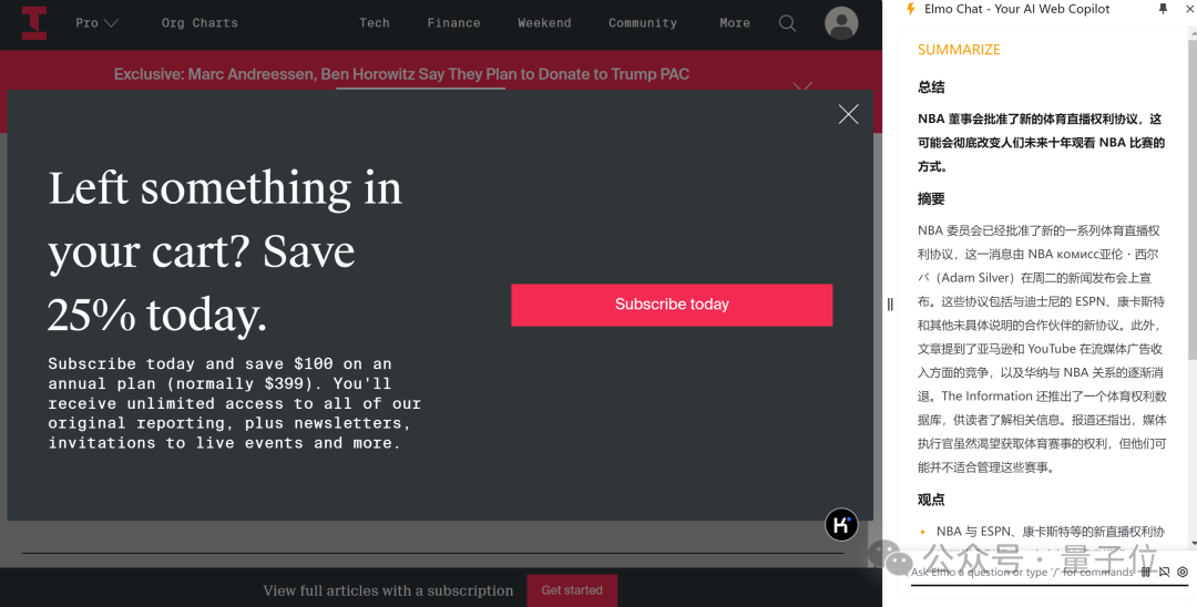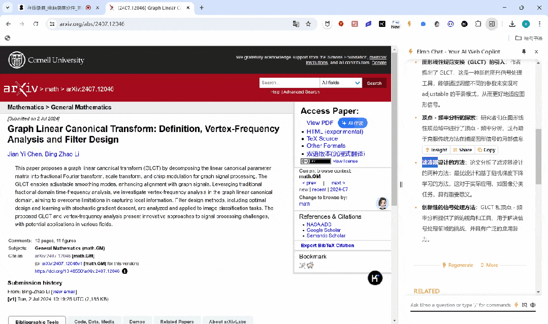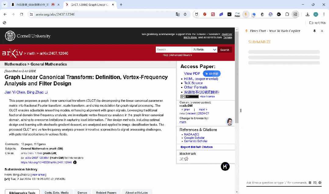 那么,Elmo插件到底能干啥?为何短短时间收获一众好评? 这就提前替大家试试手~ Elmo插件实测Elmo即插即用,能快速生成总结、摘要,以及亮点。 比如精读arXiv和PDF论文,先给它扔一些看不懂的前沿研究。