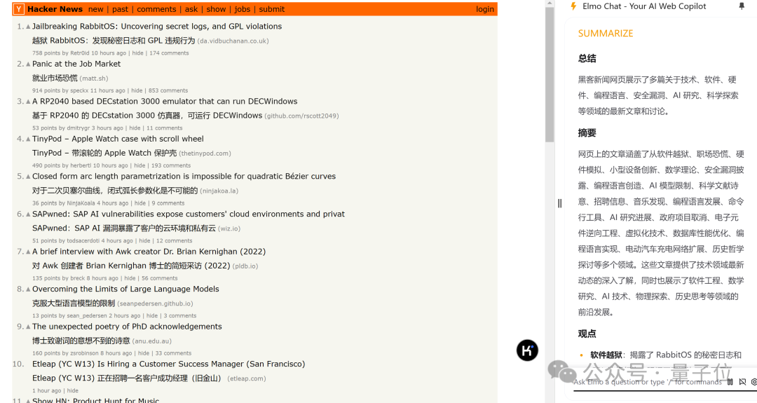 除了搞学术,Elmo还能速览国内外新闻,HackerNews、BBC,公众号等都不在话下。
